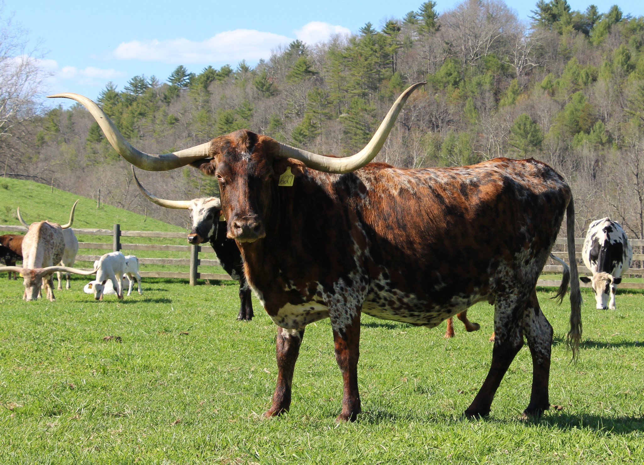 Pacific Valentine is a beautiful brindle cow with great color, and tons of horn. We can't wait to see her Longmire Chex calf's. Had a brindle bull calf in 2011 by Peacemaker 44, heifer by Mesquite in 2012, heifer by Totem Pole in Nov 2012, and another beautiful heifer by LAR Super Rio in Nov 2013.