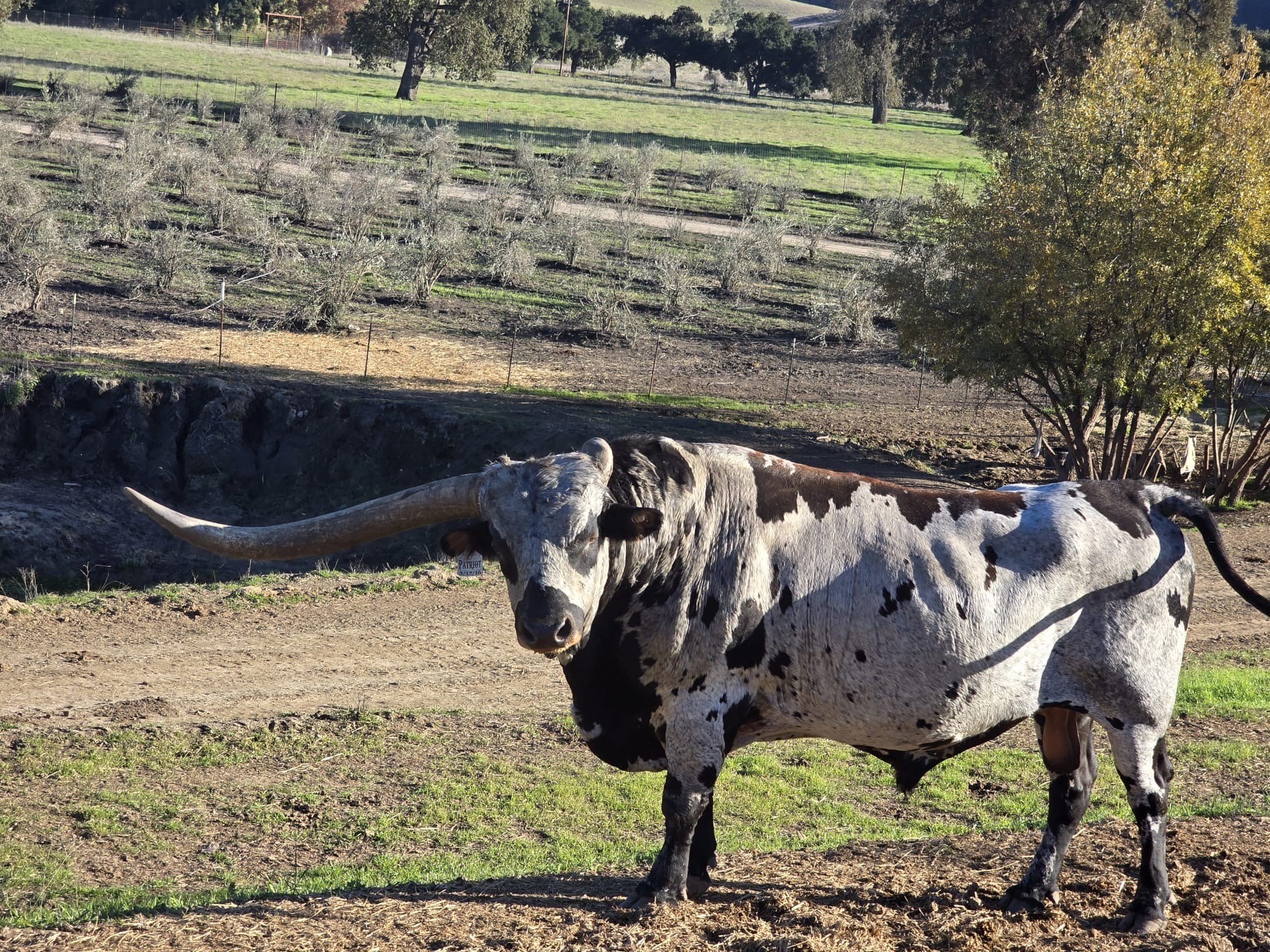 Patriot HR (Rebel HR x Southern Amber) is following in his father’s footsteps. Rebel HR eclipsed his sire WF Commando on horn growth and Patriot HR has done the same. Measuring 67.5” TTT at 24 months, Patriot HR took a growth spurt, as Rebel HR’s calves tend to do, and grew an additional 8.75” TTT in the following 4 ½ months. This young herd sire is on track to be one of the longest horned bulls in the breed. At 4 yrs. old he measured 87.375" TTT, 100" TH. Patriot measured 92" ttt before his accident which caused him to lose a horn. His broken horn does not affect him one bit. He is clean, colorful, correct, muscular and has an aggressive breeding libido. He is AI Certified #932 & semen is available.